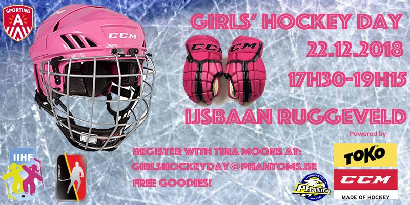 Inschrijven via : girlshockeyday@phantoms.be met vermelding van naam, geboortedatum en club.
